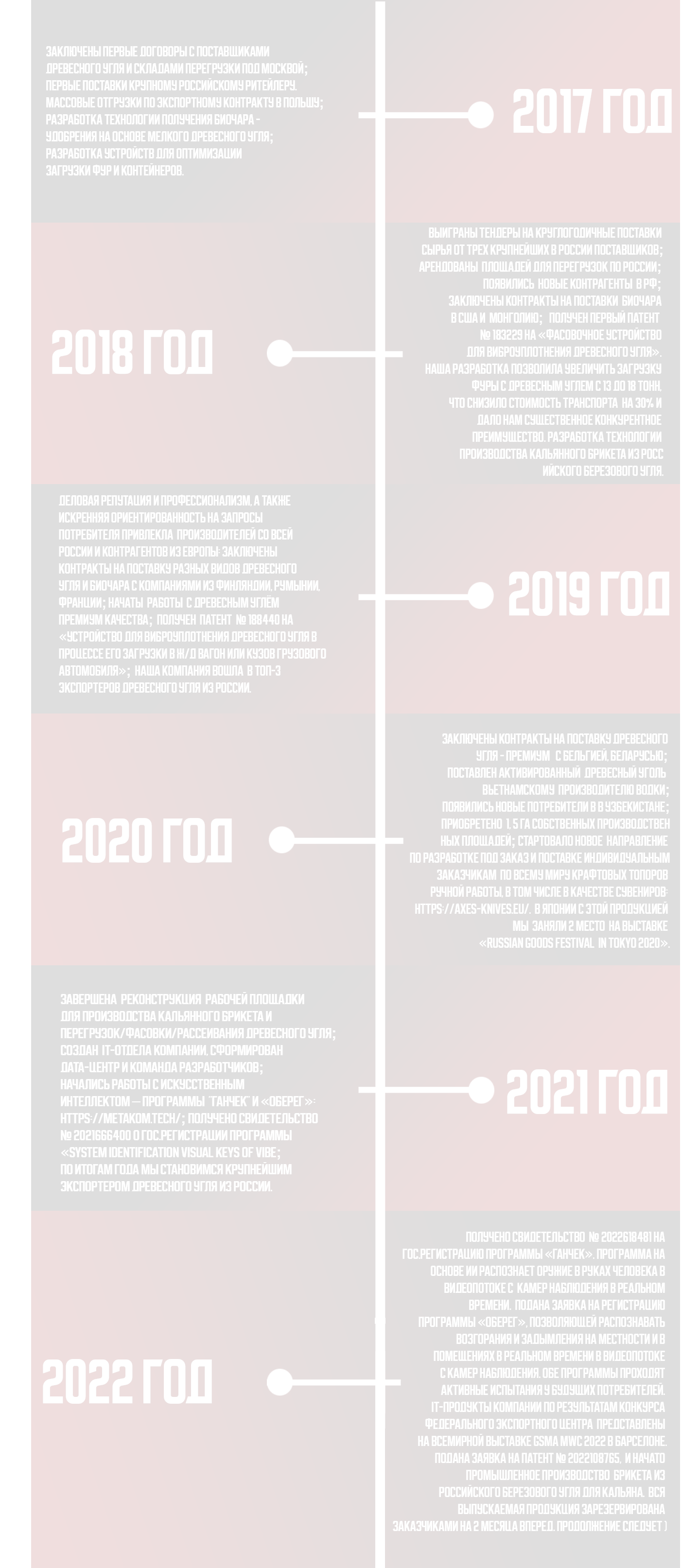Компания основана группой экспертов в производстве и экспорте древесного угля и брикета из него в 2017 году. С момента создания, фирма каждый год растёт и расширяется: